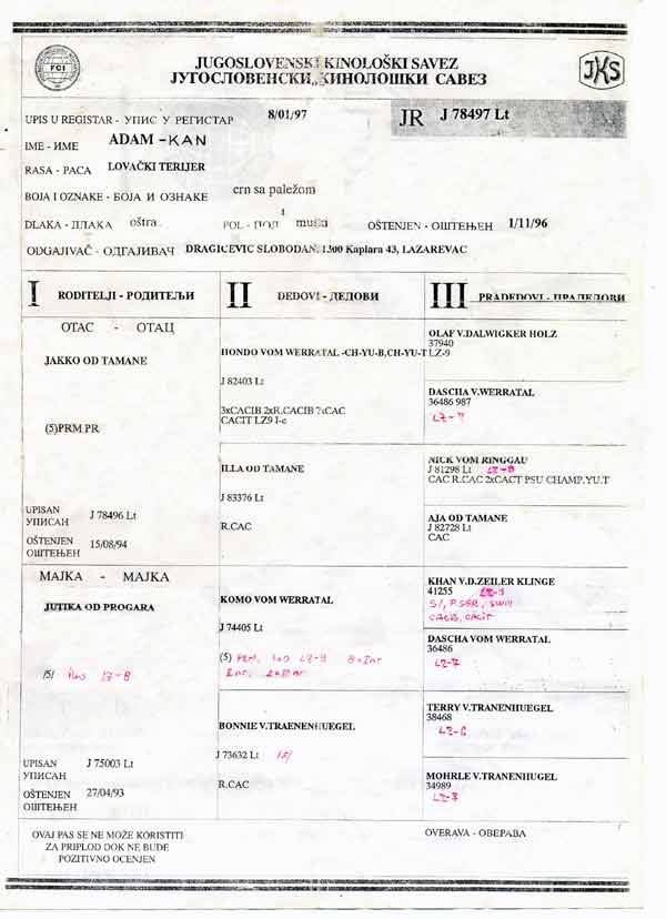 FERDINA CUP Novi Kozjak 20.07.2003. lisica ocena 4, jazavac ocena 4