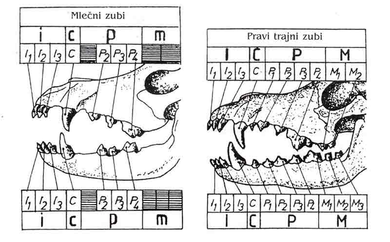 dana. Svi mlečni zubi izrastu između treće i šeste nedelje. Posle šeste nedelje pas ima ukupno 28 zuba.