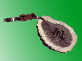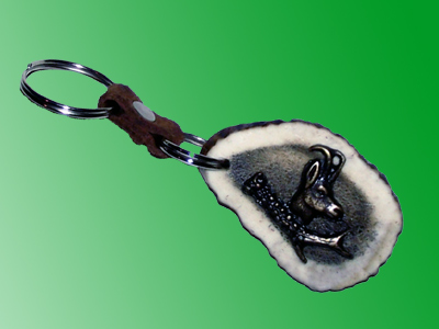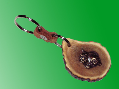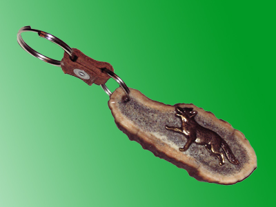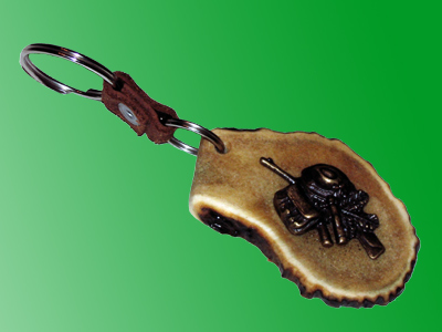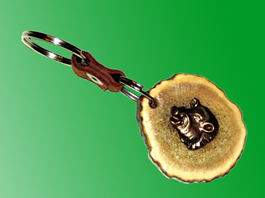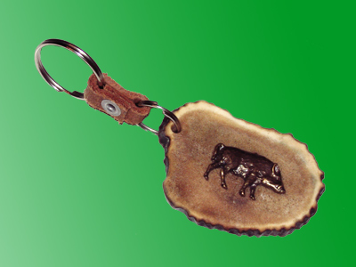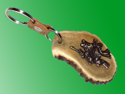 Detalj od roga je ručno obrađen i na njegovu površinu je pričvršćen bronzani detalj lova.